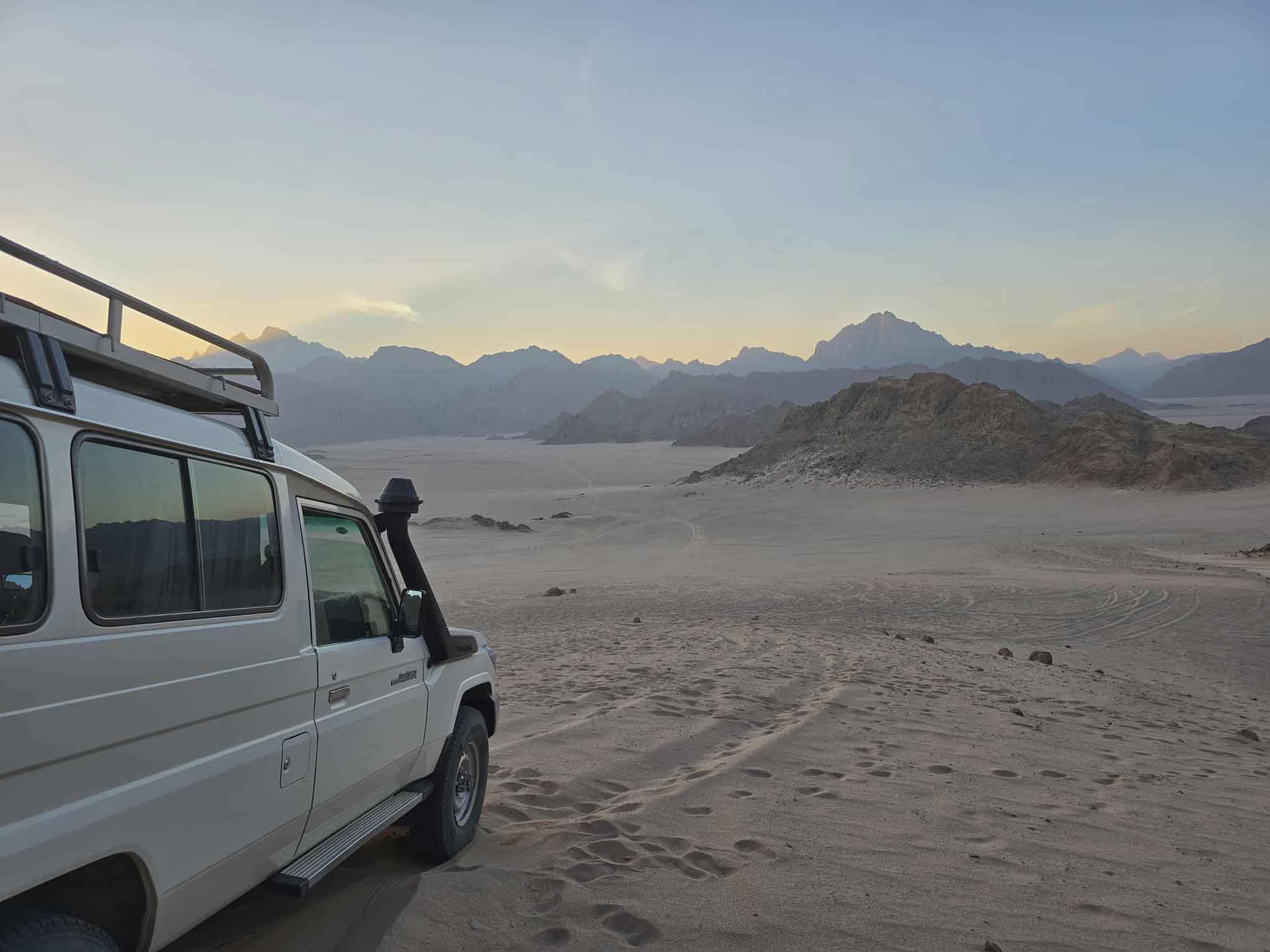 Ihr Fahrer holt Sie bequem mit dem Jeep von Ihrem Hotel in Hurghada ab und bringt Sie in die nahegelegene Wüste.