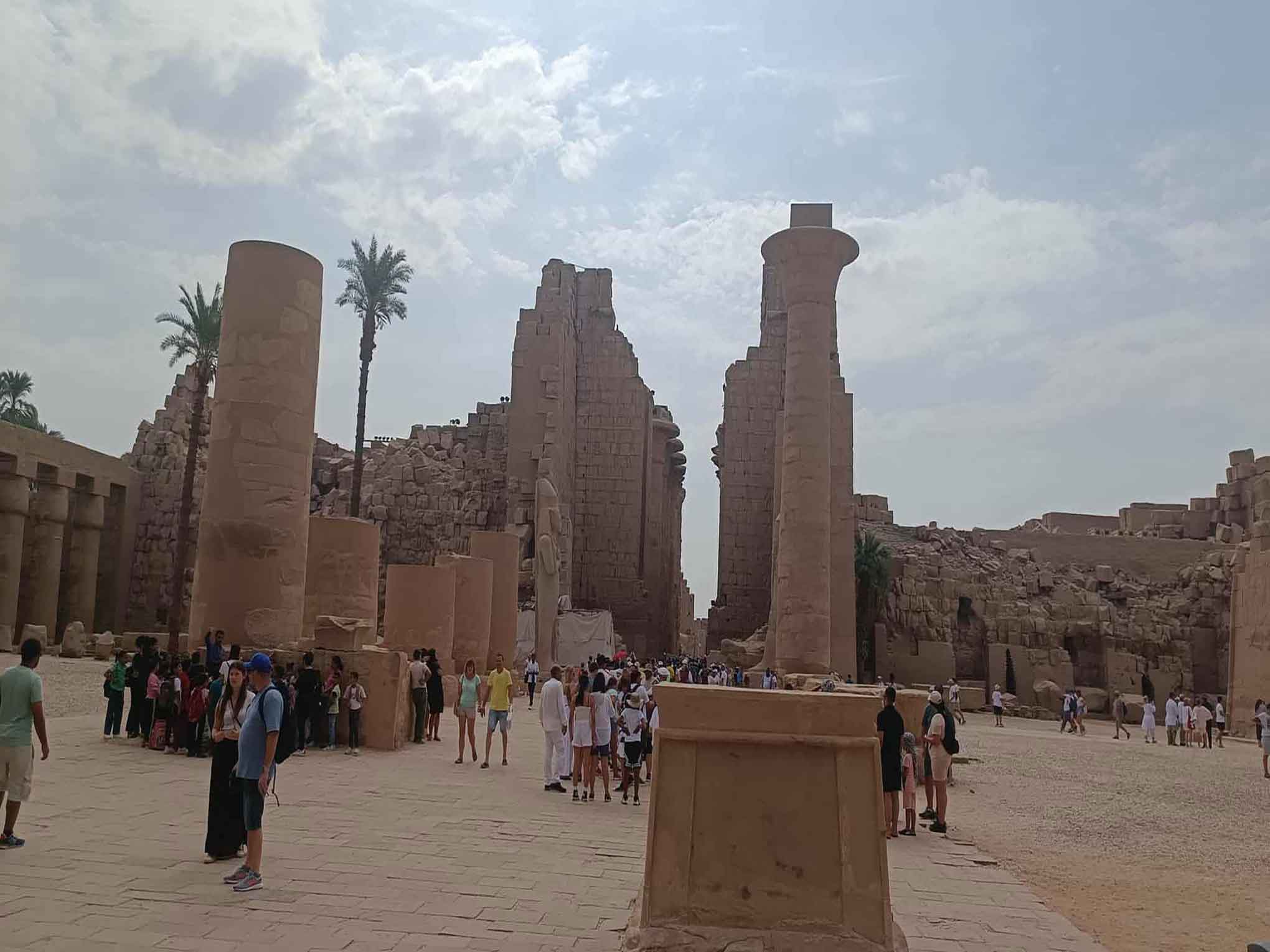 Danach genießen Sie ein landestypisches Mittagessen in einem lokalen Restaurant, bevor es weiter zum imposanten Karnak-Tempel geht. Dieser größte religiöse Komplex der Welt beeindruckt mit seiner monumentalen Säulenhalle, der Sphingenallee, Heiligtümern und Obelisken, während Ihr Guide Ihnen die spannende Geschichte und Architektur des Tempels näherbringt.